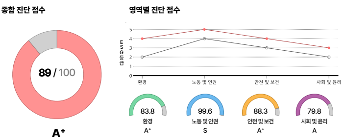 에스지오가 2025년 ESG 공급망 심사에서 종합 점수 89점으로 A+ 등급을 획득했습니다.