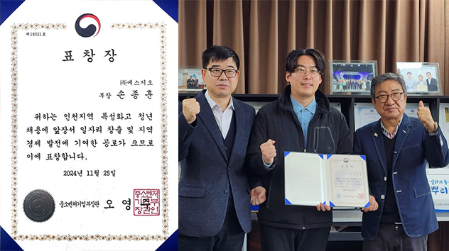 Based on these efforts, SGO was recognized for its contribution to promoting the employment of specialized high school graduates in the Incheon region and received a commendation from the Ministry of SMEs and Startups.๐
